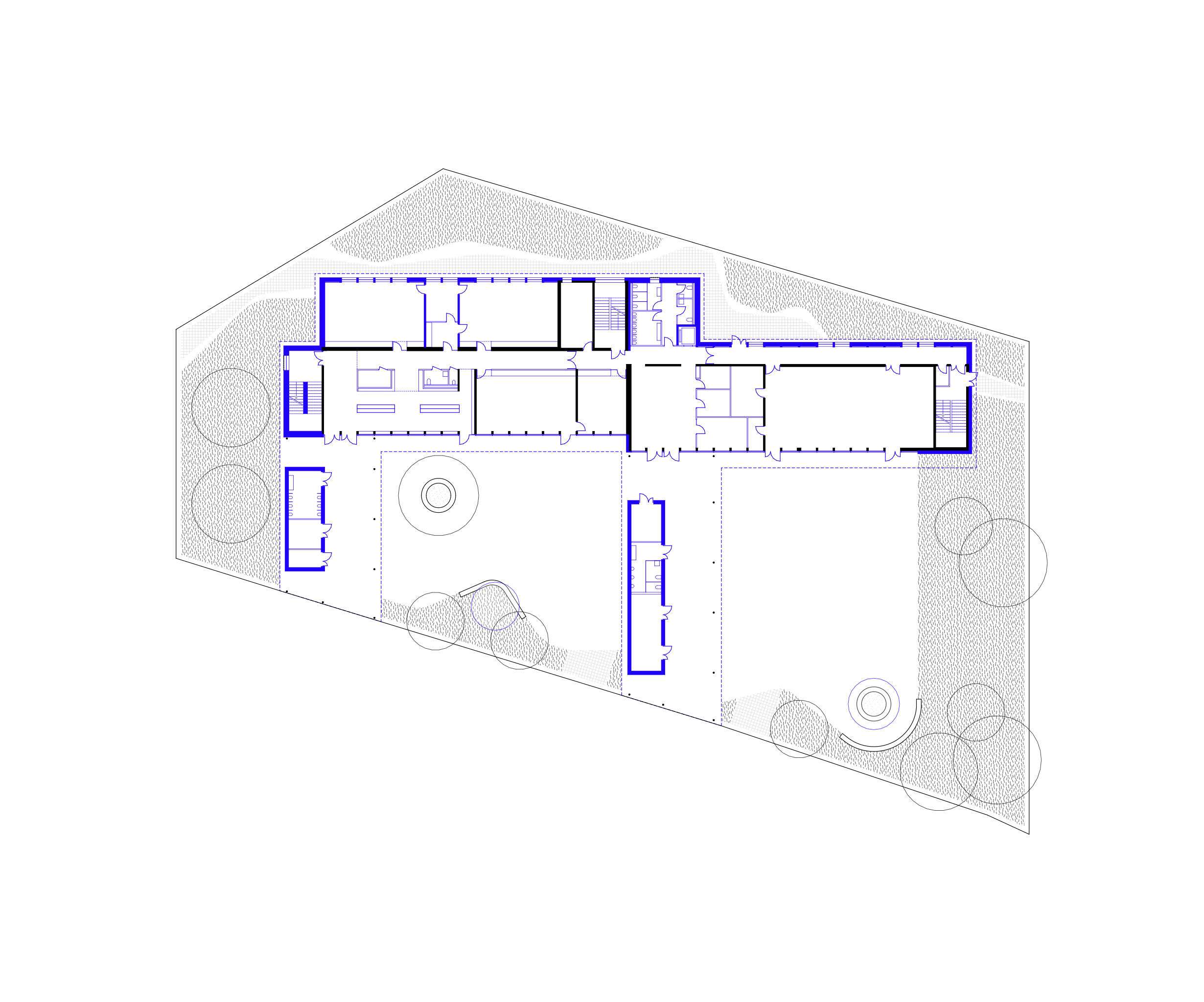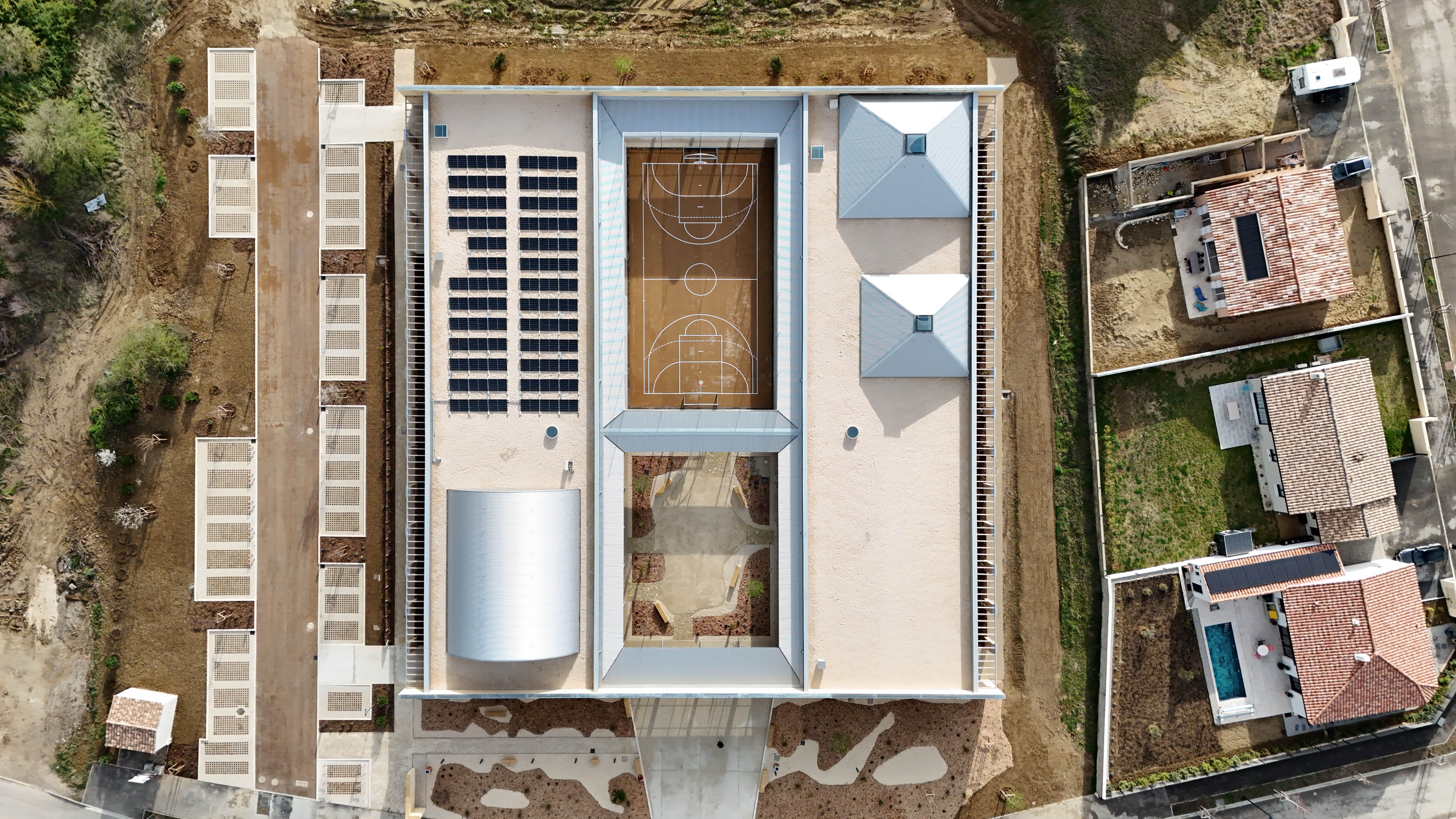 - Descriptif courtInstallé en partie haute du terrain, le nouveau bâtiment s’adosse à la frange bo…